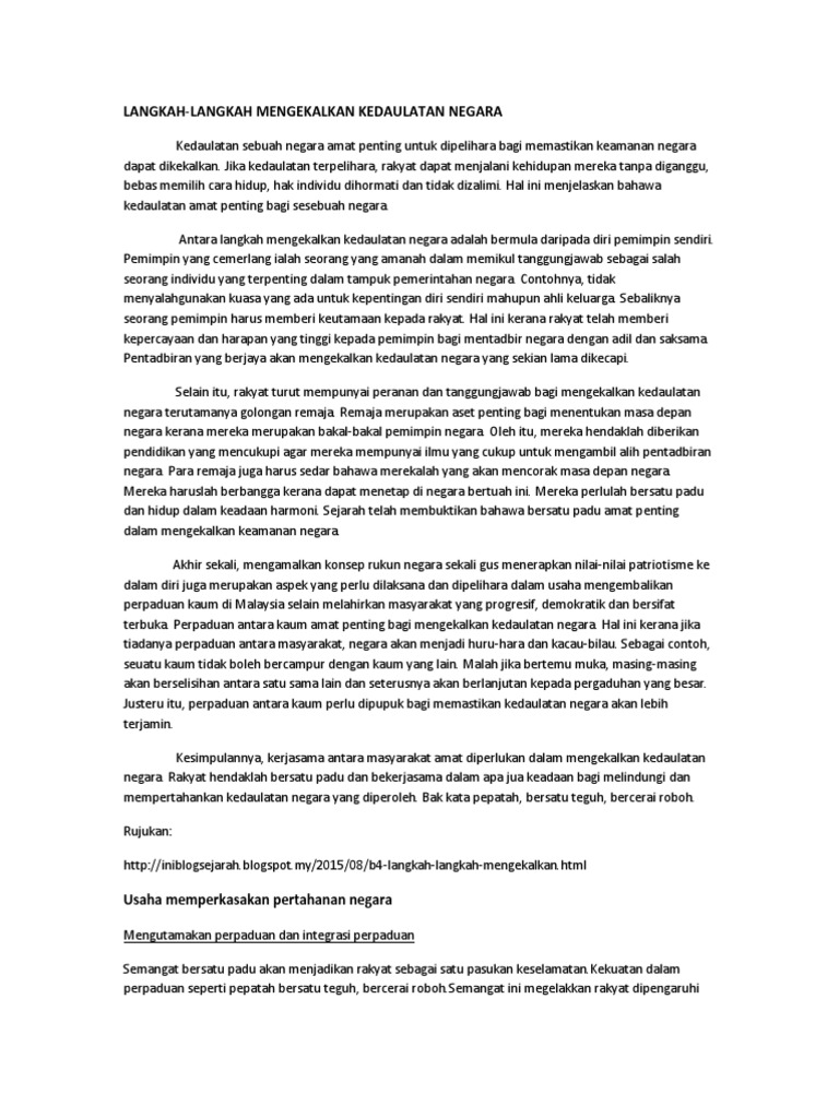 Langkah Langkah Yang Perlu Diambil Untuk Mengekalkan Kedaulatan Negara Sejarah Pdf
